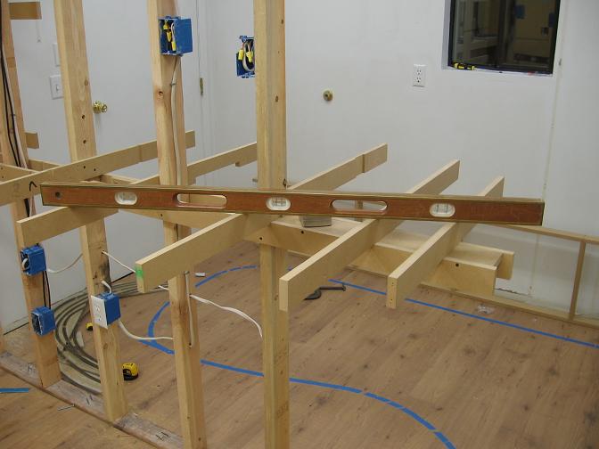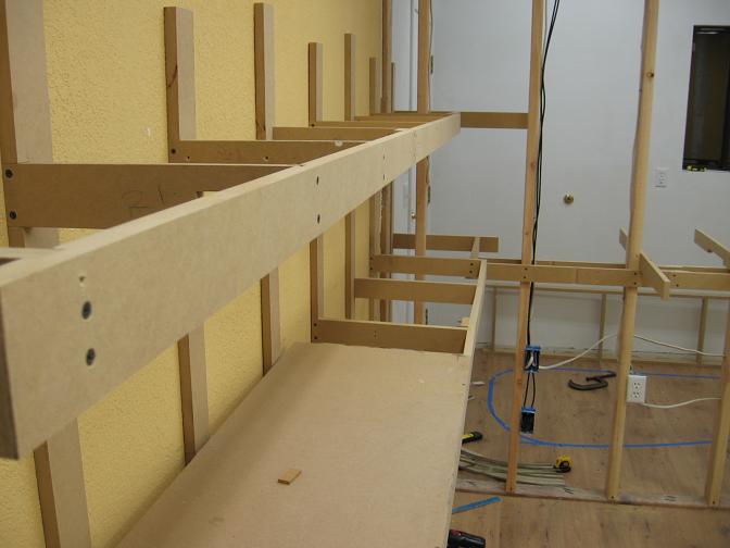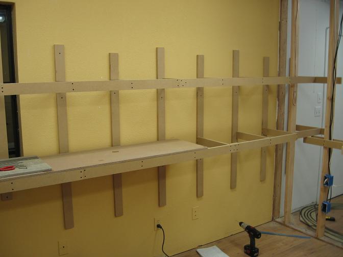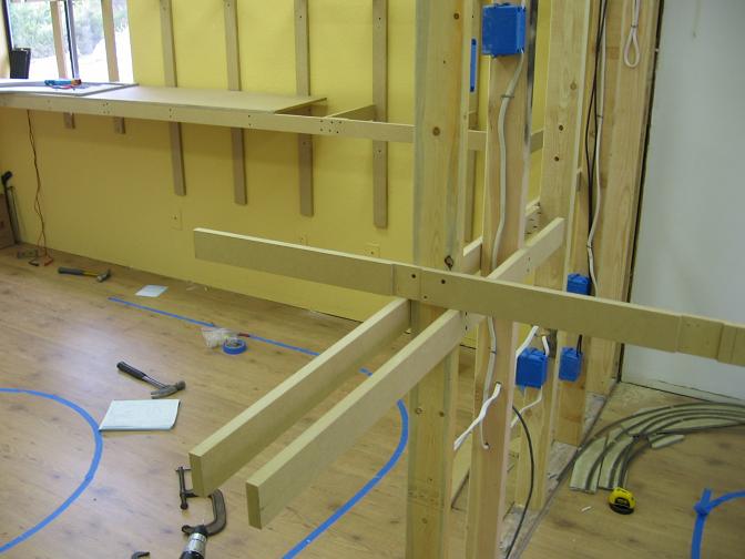 This shows the support bracing attached to the wall studs with one of the cross pieces attached.