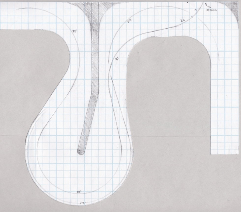 Ok, the issue I was having last update was the placement of the upper level trackage coming out of the hole in the wall from staging. Here is what I was trying to achieve. I wanted the upper level main line to go around the helix instead of just curving around and going through the new backdrop (where the "24" and "22" are)