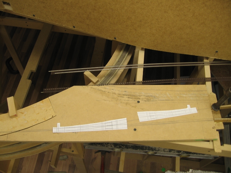 #10 and #7 turnouts. The #7 will run a siding over to the inside of the helix where a gravel plant will be.