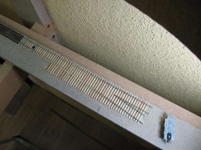 Here is where the turnout will be located. The track on the left is coming from staging. This area will eventually be covered up by the town of Mammoth, which will be 7" above the track here.