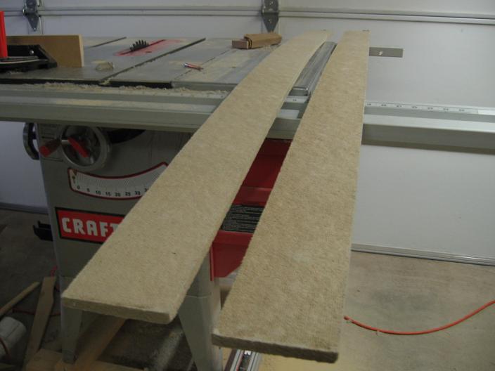 The first thing that comes into play when hand laying a turnout is the roadbed. When I started, everywhere I read stated that I needed to use Homasote for it's ability to hold the spikes. Well 4x8 sheets of Homasote is hard to find in most places, and where I live is no exception. What I did find was Homasote, but not in full sheets. At a local building supply store they sell an Expansion/Contraction product that goes between joints in concrete. It comes in 3.5" wide by 10' long strips 1/2" thick. I don't remember what their name for this was, but it's normal Homasote, no question. Here is a pic of what it looks like:
