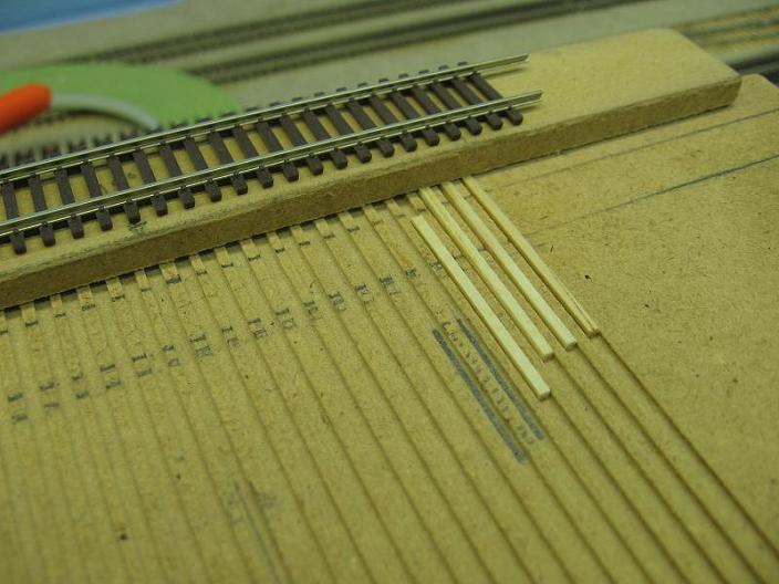 Ok, next up is the ties. I use both the 8'6" cross ties and 16' switch ties from Kappler Mill. http://www.kapplerusa.com/y2k/p-n-ties.htm Get the standard size (7" x 9")