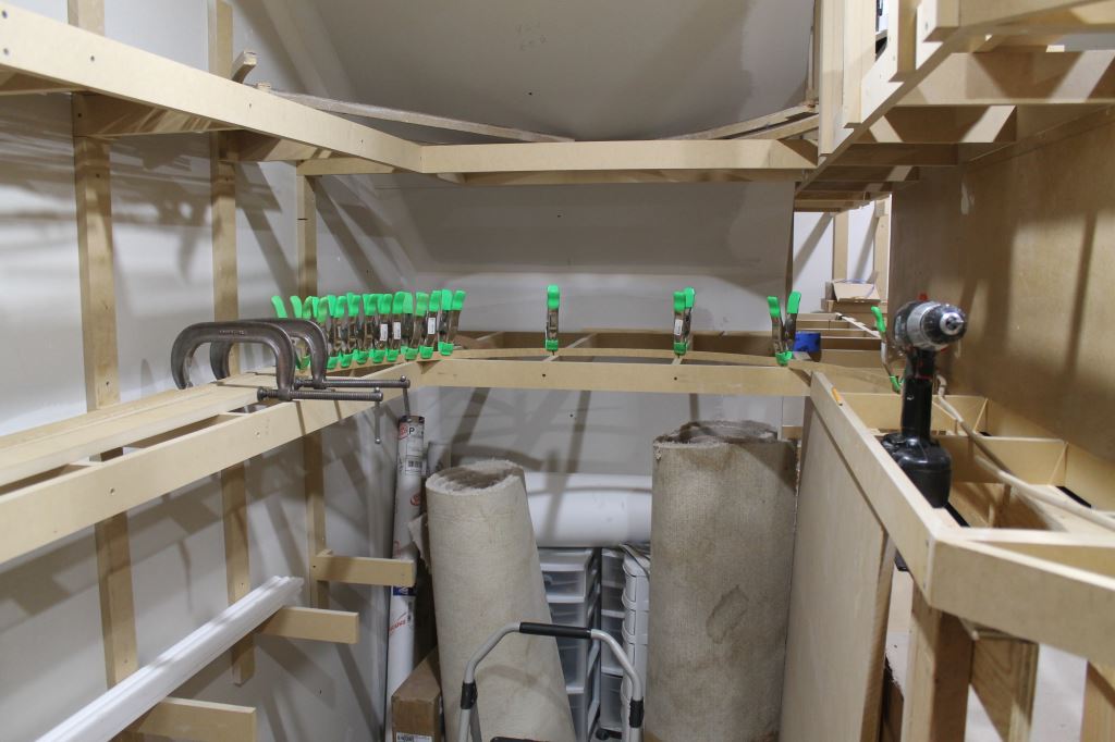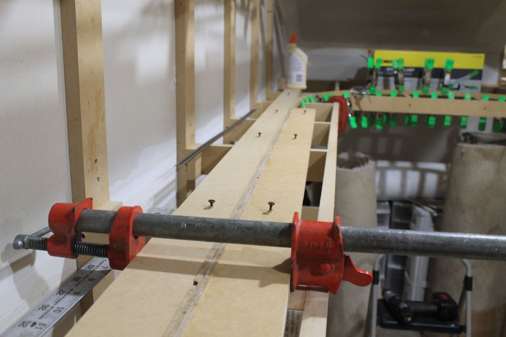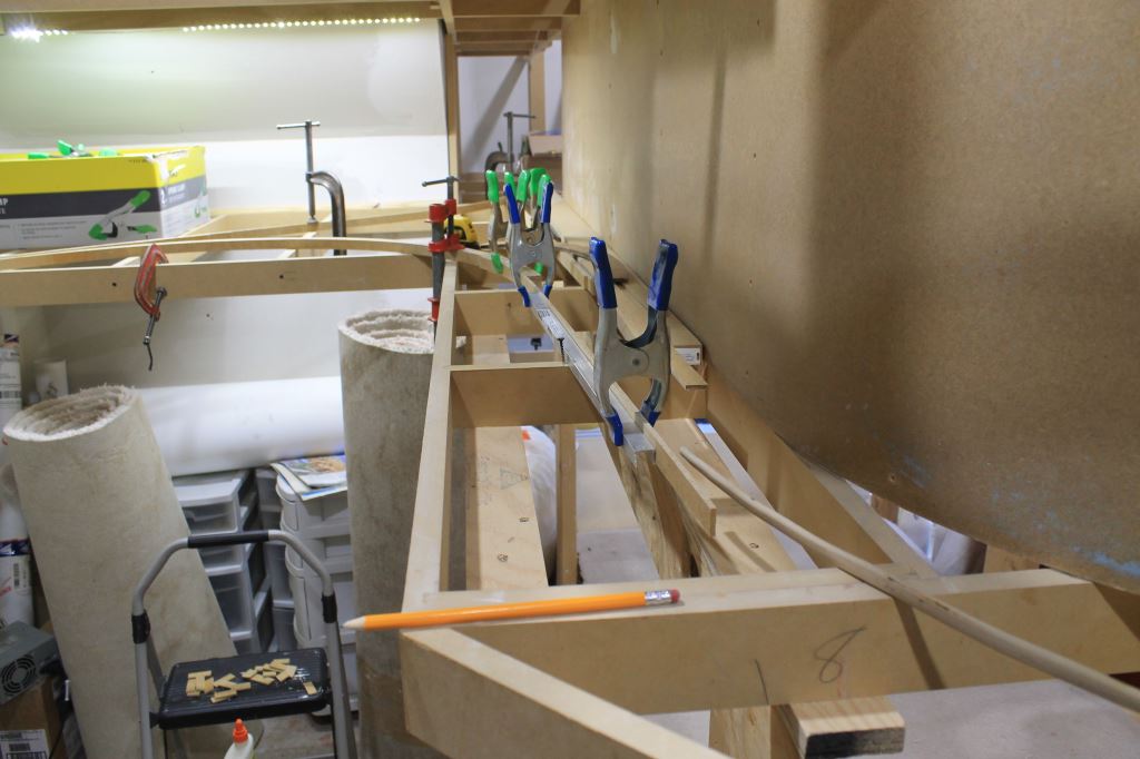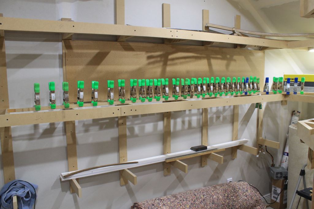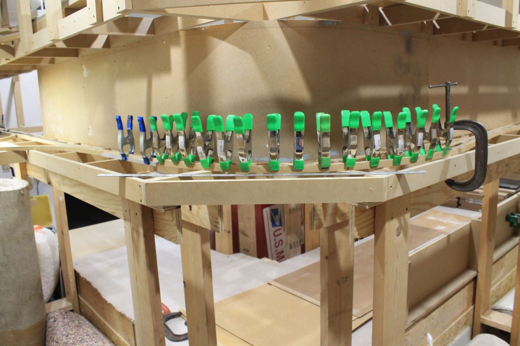 More spline, more clamps. I also put up a section of hardboard backdrop