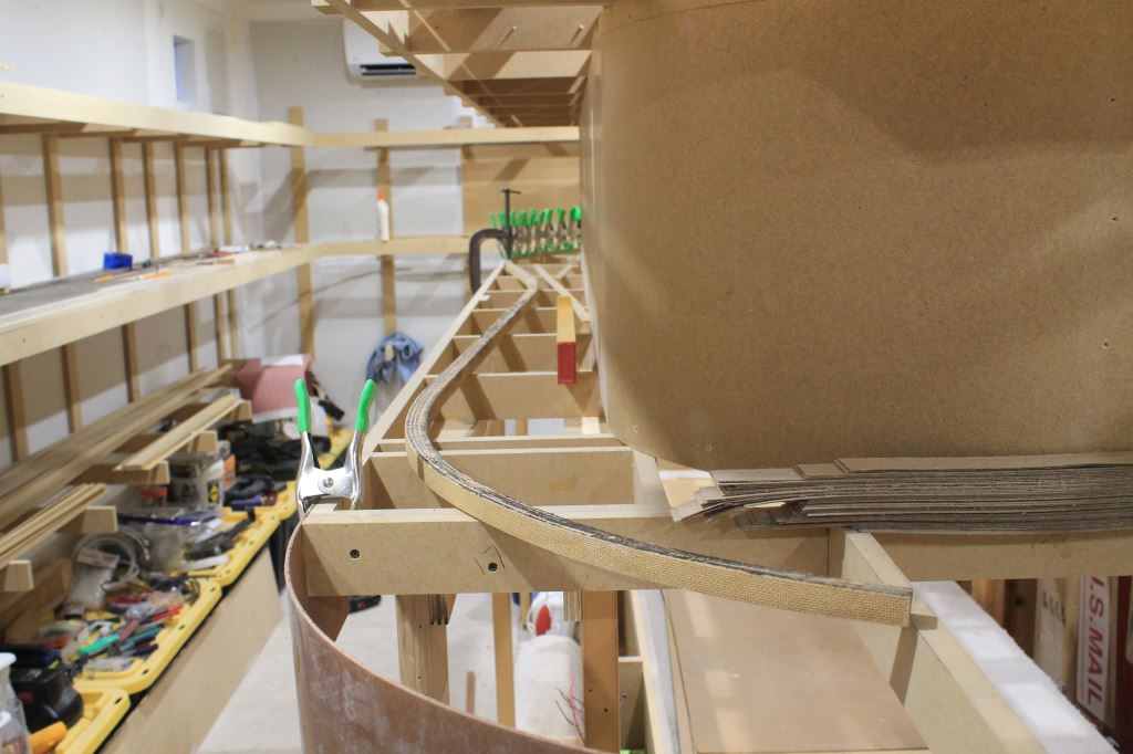 Doing a little sanding to even out the spline. Can't wait to get some roadbed and track put down!