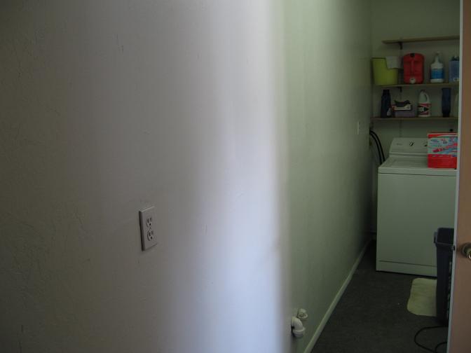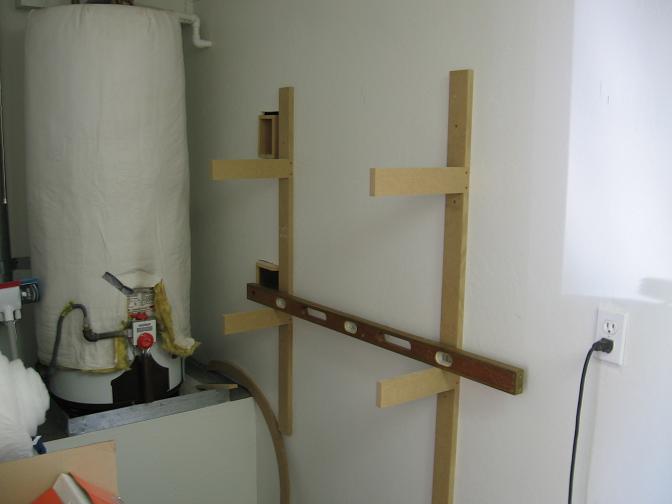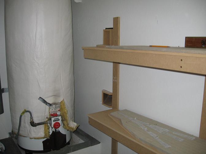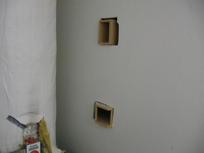 Here is the holes in the wall for the upper and lower levels, right next to the water heater.