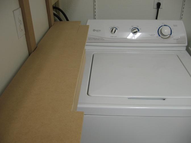 Another thing I had to consider was the washing machine. I originally wanted to have 11 tracks on the bottom level, but they would interfere with the opening of the lid to the washer, so the most I could get away with was 10, and even with that, I had to make one track shorter. So I added one track to the top level to give me a total of 21 staging tracks, 10 bottom, 11 top. I'm hoping that should be sufficient.