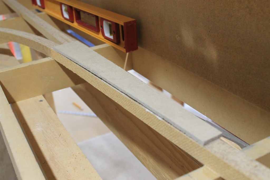 At the end of the isle, I put in a short piece at a 45° angle. As the valance curves around, this will fill in the space behind it.