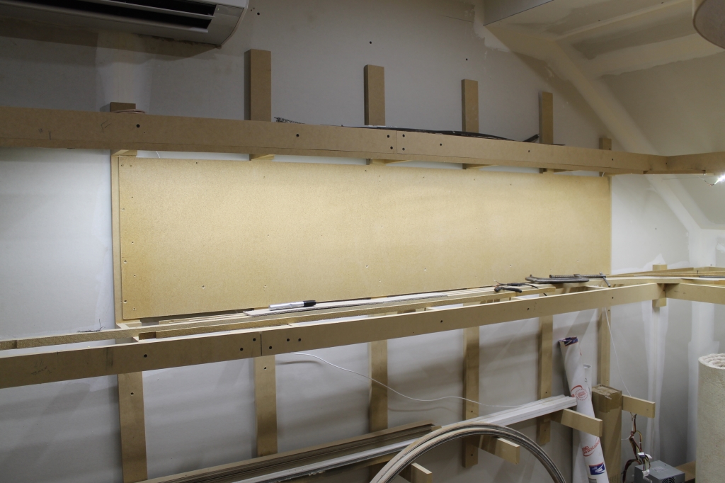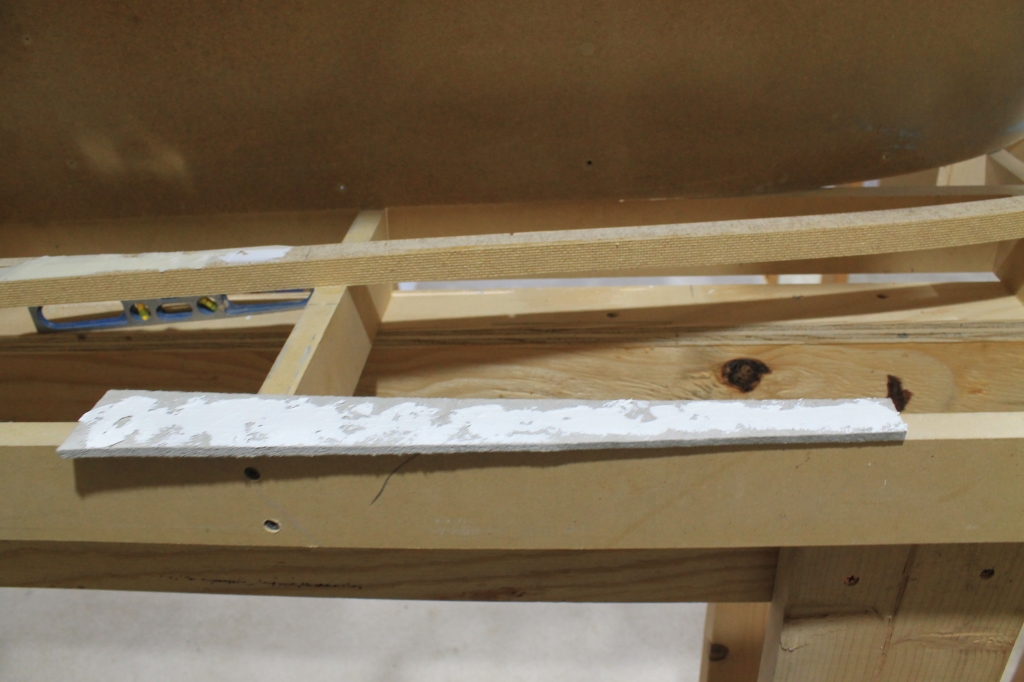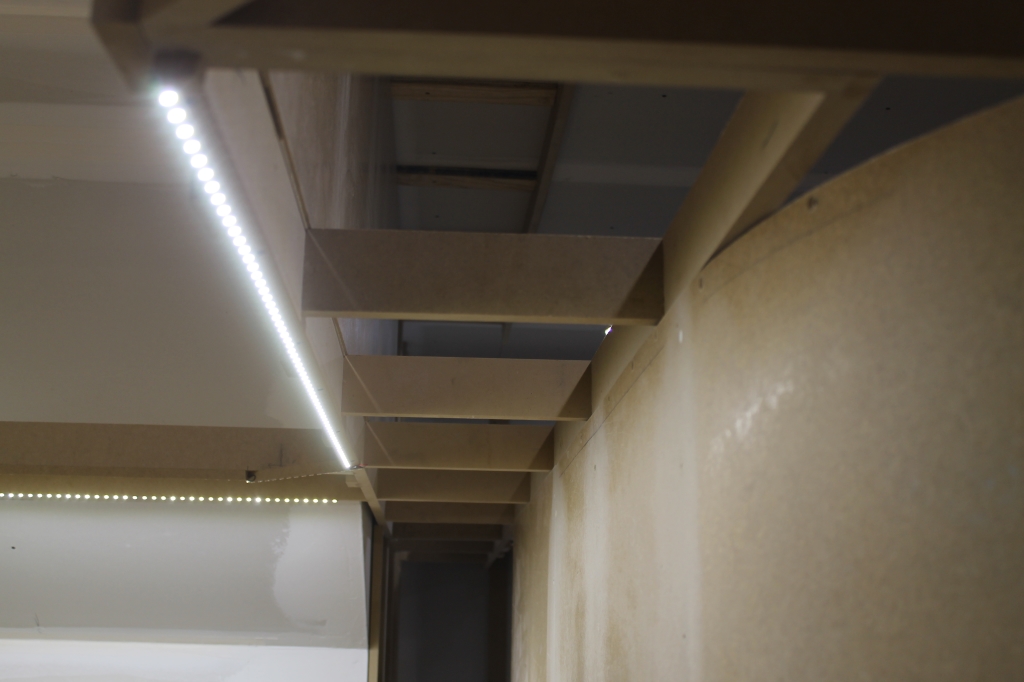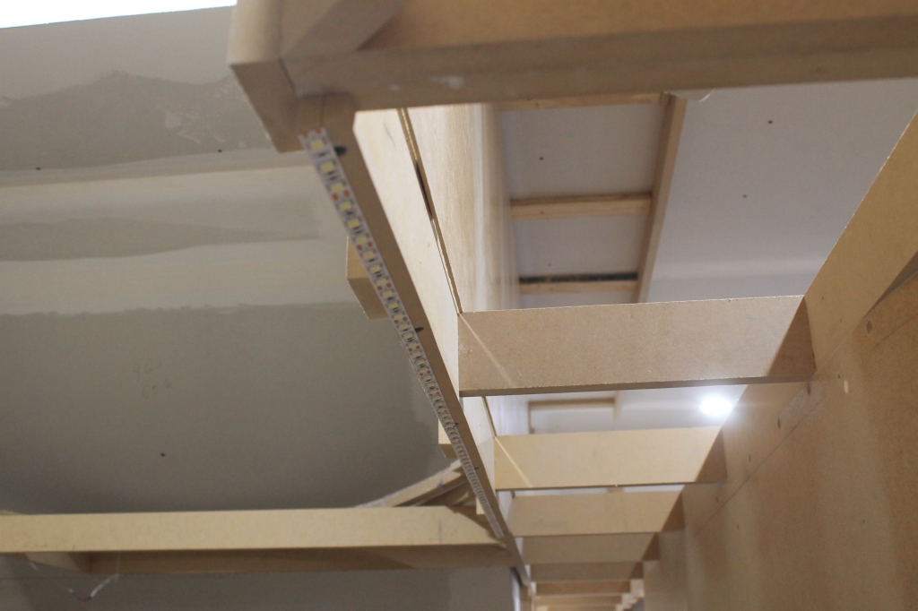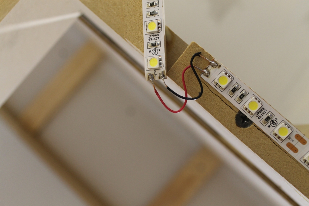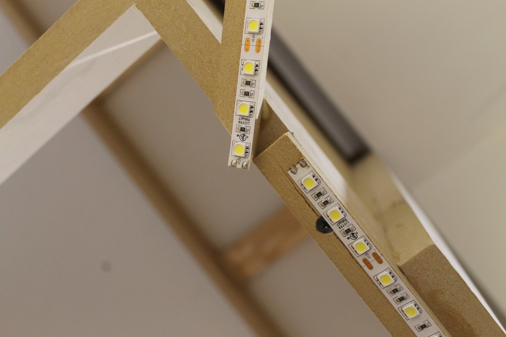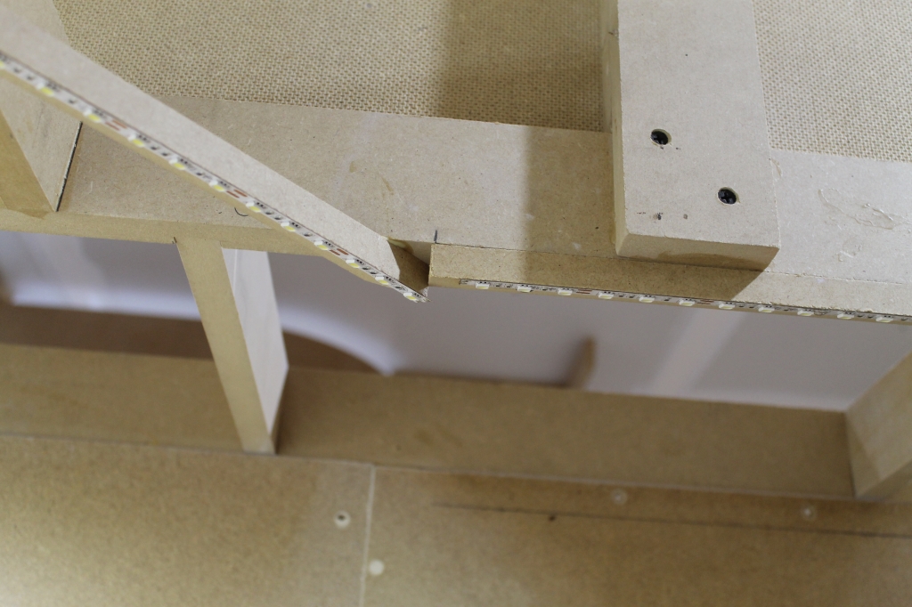 Cut out a piece of MDF for the LED light strips. The lights will attach to the angled part.