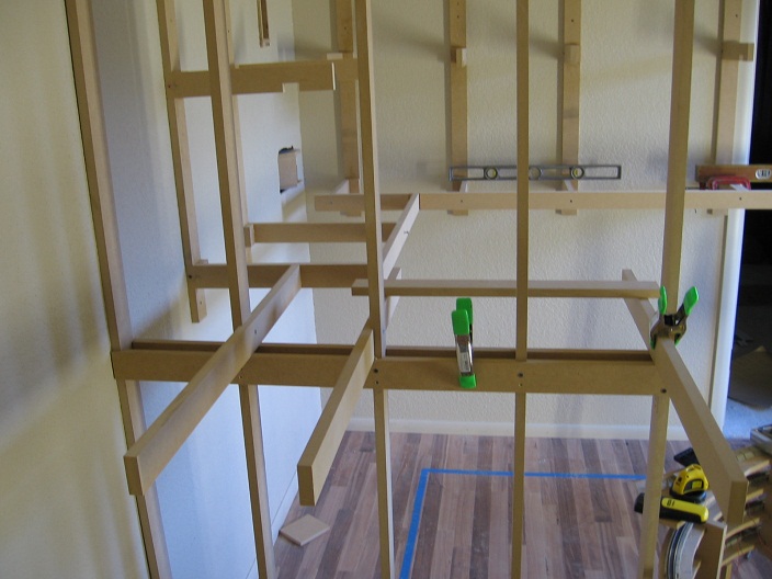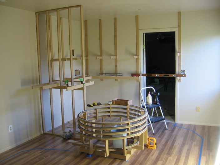 Apparently I got a benchwork building bug in me, since over the course of 2 weekends I cut out a mass amount of wood and assembled quite a bit of benchwork. I also finished up some other projects around the house, including laying some new tile at the back door. Needless to say, my social life took a beating, but I was told it will recover ;)