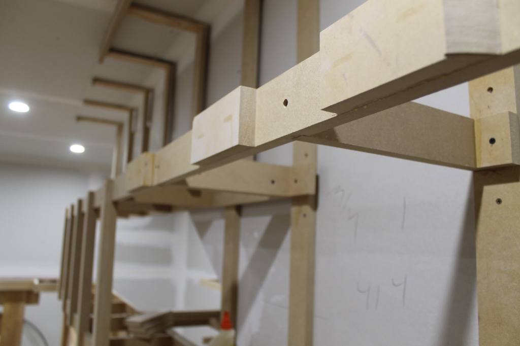 Added a strip of MDF to the front of the arms for the valance on the upper level. This will also give me a place to mount the LED lights.