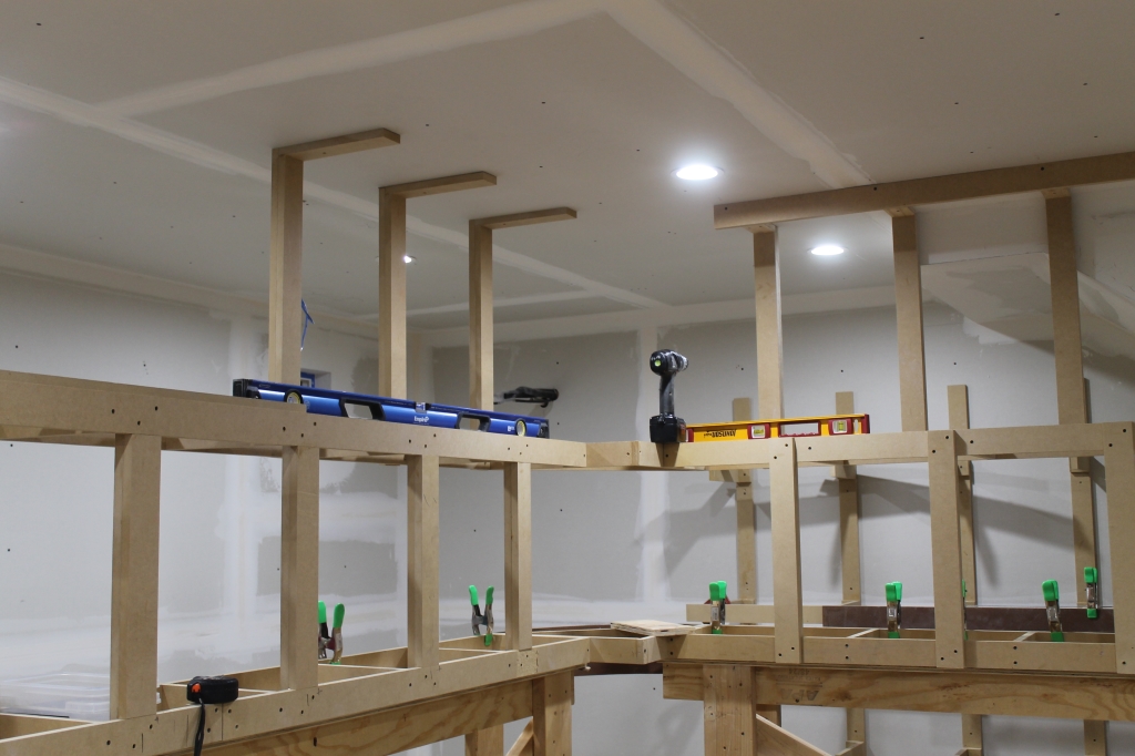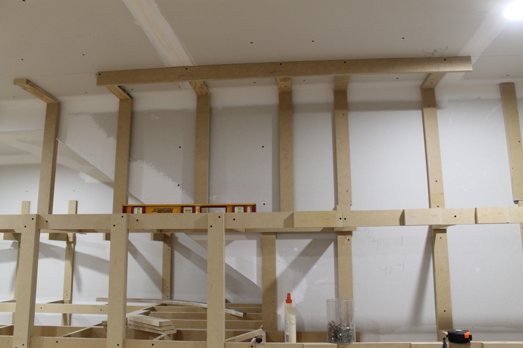 Finished putting in the strips of MDF for the upper level valance and lights.