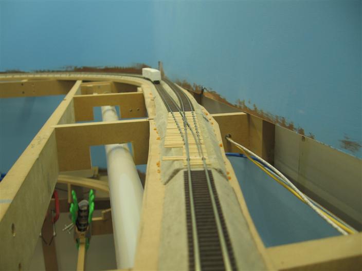 Looking back the other way. I'm only going to put in one "s" and only have the tracks cross the river one time. So much for my plethora of bridges. =(