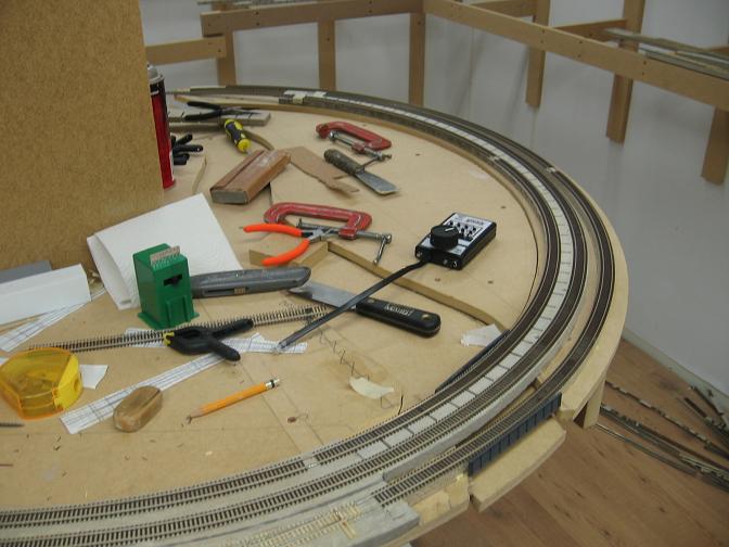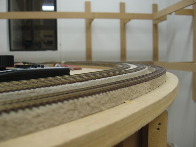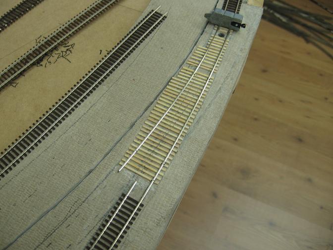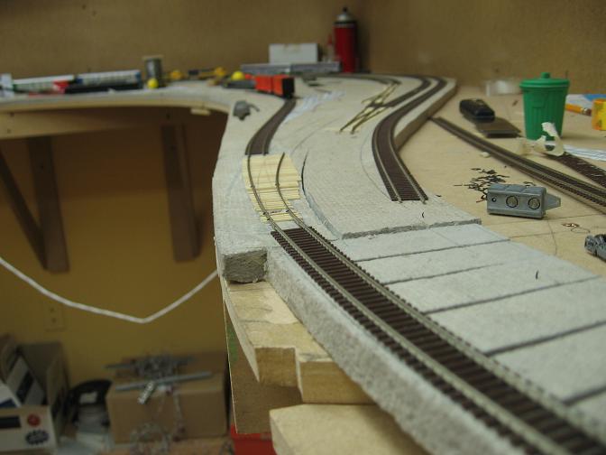 Both the Main and Siding are superelevated, so that makes it appear that the yard lead is lower, even thou all 3 tracks are on top of 1/2" homasote