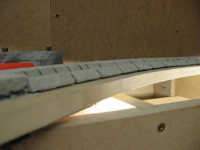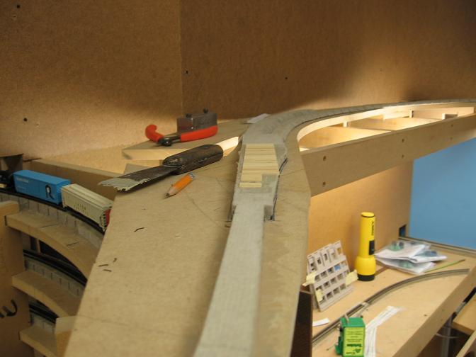 I cut the sub roadbed for the siding lower than the main, to make it look more prototypical.