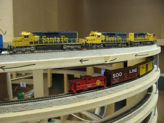 Here is a faraway pic. The loco is sitting on the last curve of the helix.