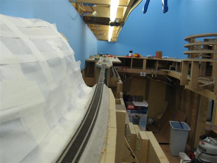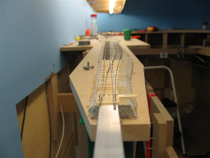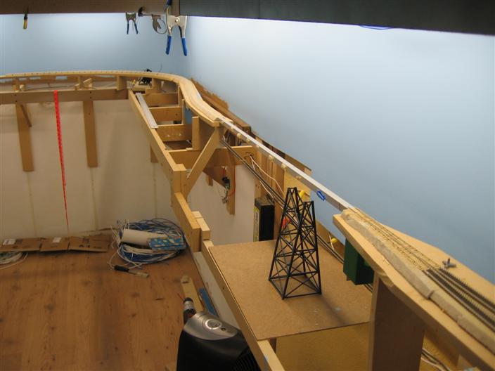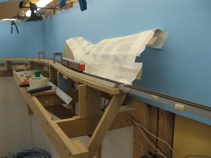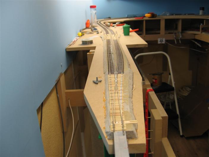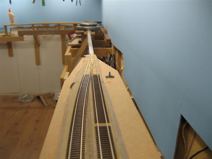 Looking back the other way. I need to put up the facia so I can continue mocking up the scenery around the bridge and below the track.