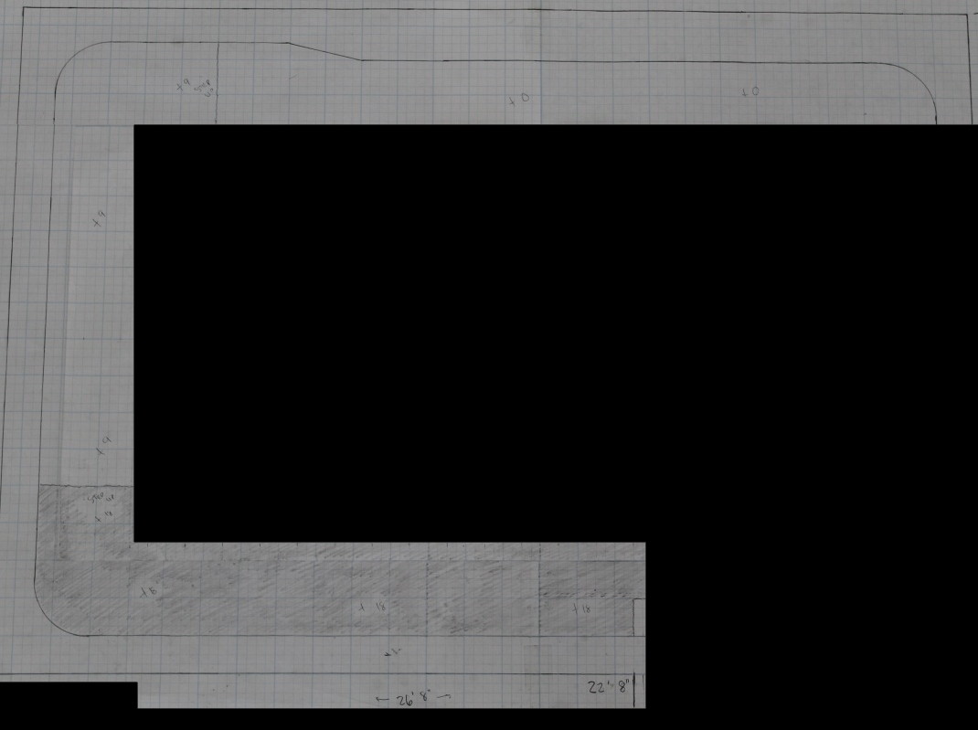 At the time I was removing the old layout, I had went down to the city to see about an addition to the house. The setbacks for my propery would allow me to add 9 more feet to the rear of the trainroom. That would increase the width from 11' 7" to 20' 7" with the length staying the same at 18' 7". For a few months after, I had started drawing up plans for a mushroom style layout, and although it would be tight on the isleways, I could fit one in. The juices were flowing and I was excited about a totally new design! A friend of mine had put me in contact with a contractor, and as we talked about the addition, my soon-to-be wife asked if it was possible to add a master suite 2nd story on top of the trainroom. The contractor got us in touch with an architect and after a month or so, we got a green light to proceed!