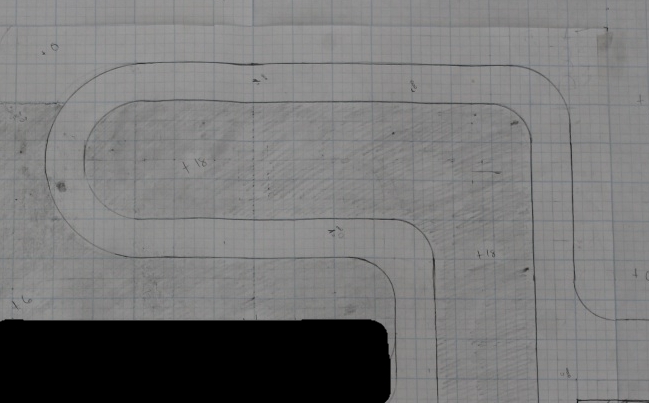 Most of the middle part of the layout is traditional mushroom style, with one deck over the other. The lower level track comes in at the bottom right and follows the outer walkway around this section. The upper level track comes in at the bottom left and follows the inner walkway (those +18 on the plan below)