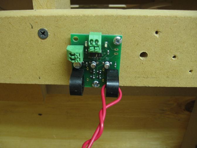 Here is Team Digitals DBD22 block detection unit. It's 2 detectors in one. The red wire is one side of the power bus wire for a block of track.