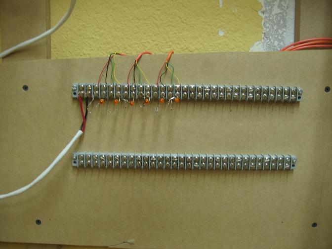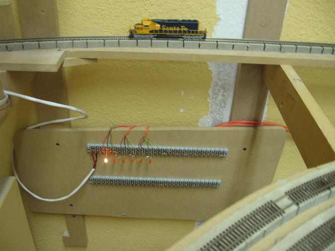 So far I have 6 blocks installed, and these are the LEDs temporarily set up. Eventually they will be installed in the dispatch panel in the other room.