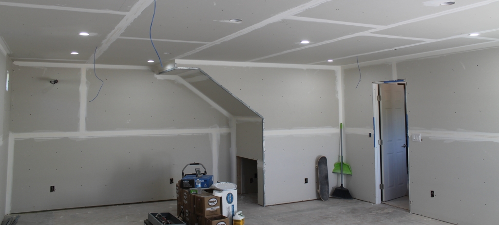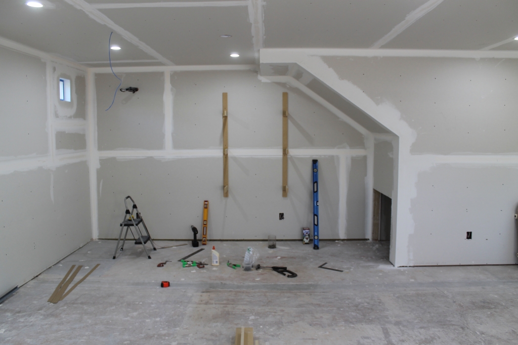Looking back towards the room entrance. This section will eventually have the mushroom top on it.