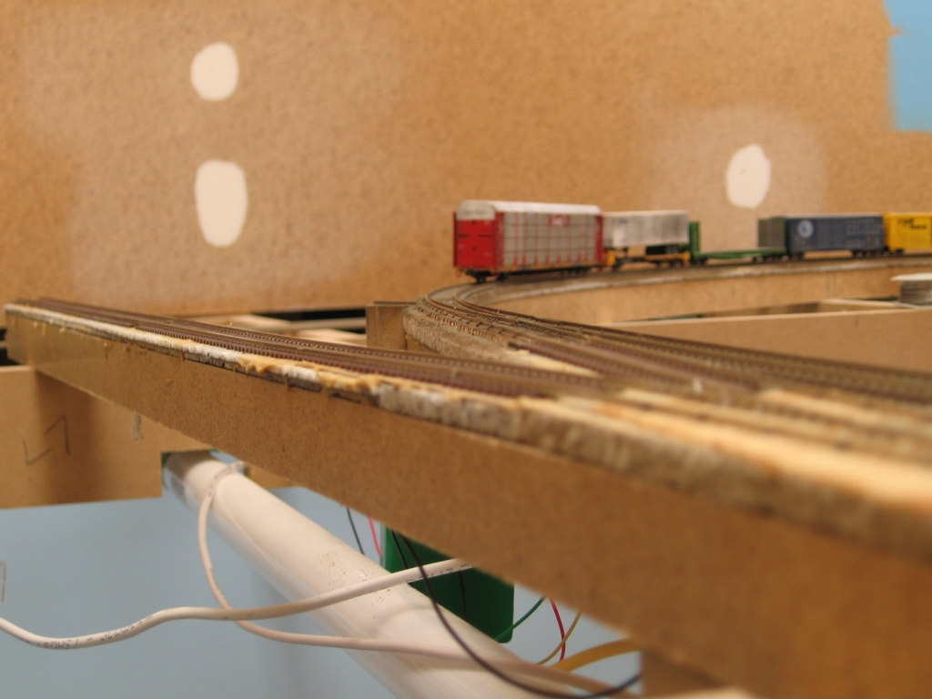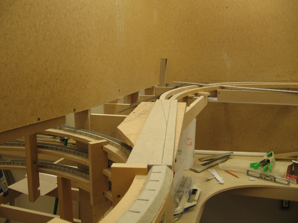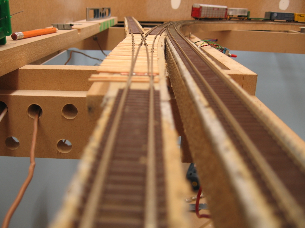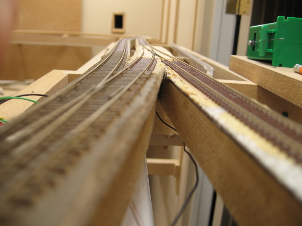 Helper pocket track put in. Note the change in roadbed thickness.
