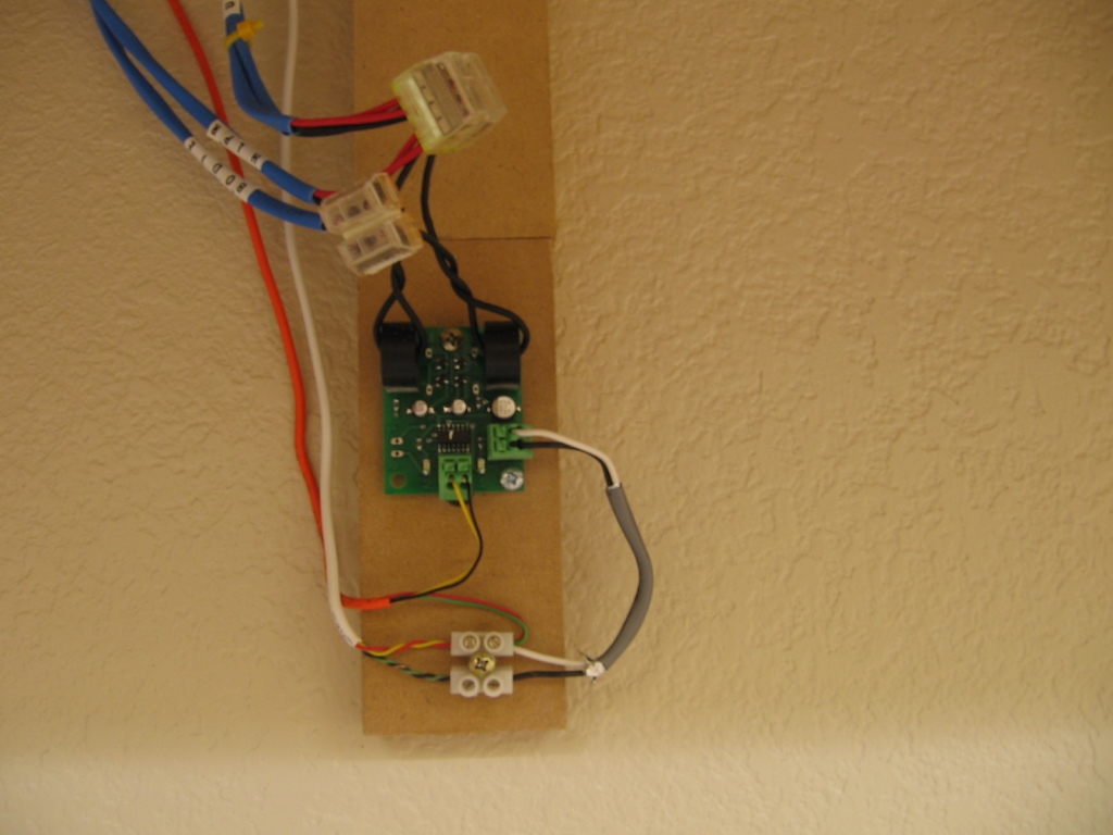 Detection circuit (Team Digital) wired up. This is for the Bodie block and the helper pocket. Top 2 blue wires are DCC Upper Level bus, lower blue wires are the 2 blocks, white is 12v and orange is power for the LED lights in the dispatch panel.