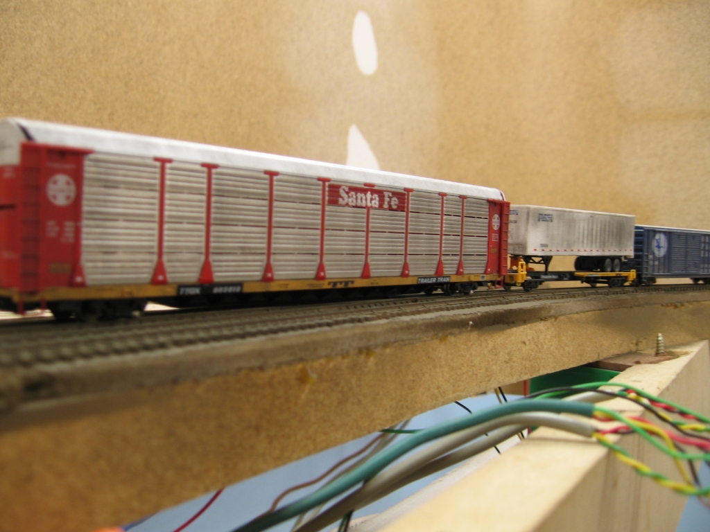 Test cars. Autorack, single axle Frontrunner and a couple 50' boxcars.