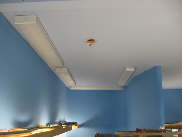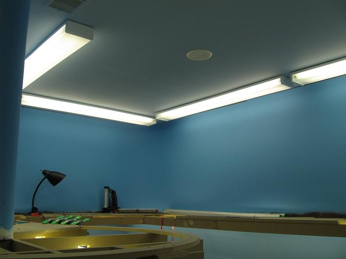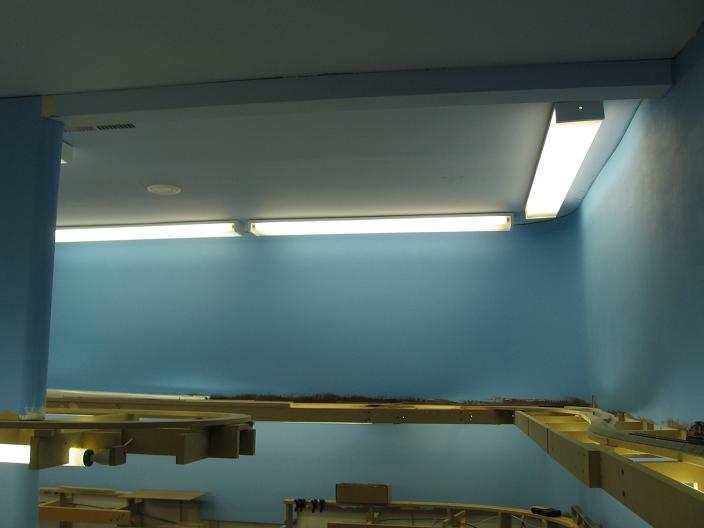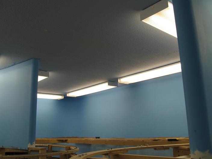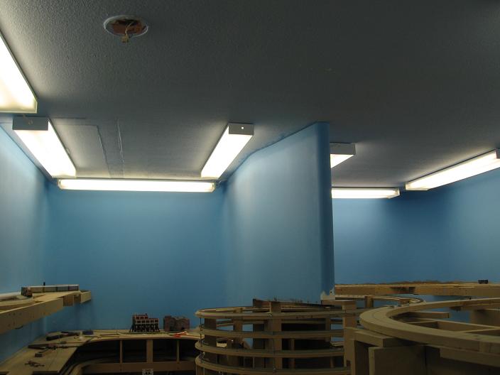 Let there be light! There are Five 4' dual light fixtures on this side of the train room.