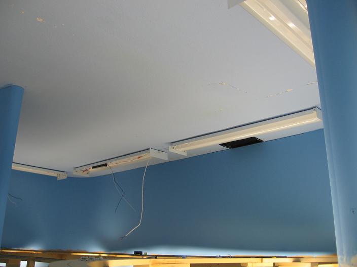 Looking the other way from the previous pic, I have taken down all the light fixtures and have retrofitted them with new Electronic T8 Ballasts.