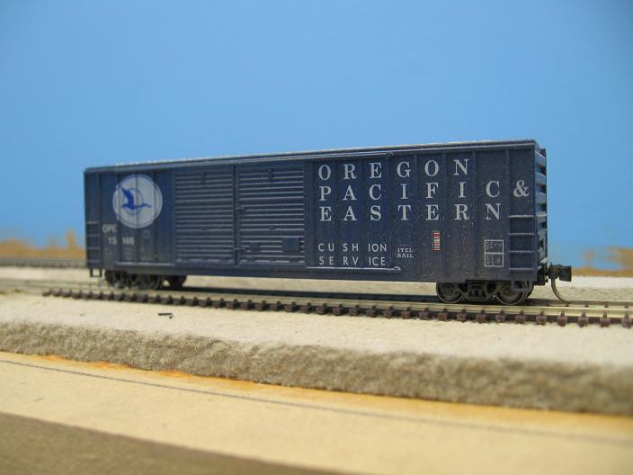 Here is a close up pic of a boxcar using just the room lights. Before, I had to also use my desk lamp to get a nice bright picture like this. It's a big change in there, and now I'm finding small mistakes in my backdrops now that the light is so bright! Gonna have to go back and fix them now...