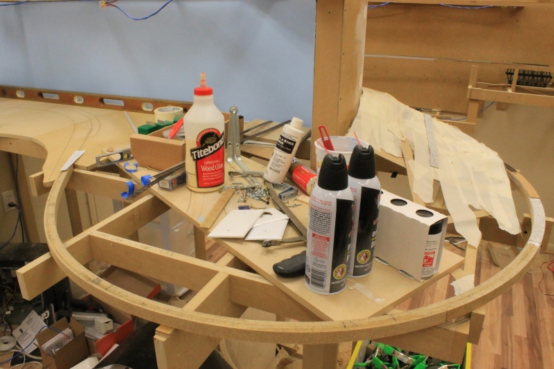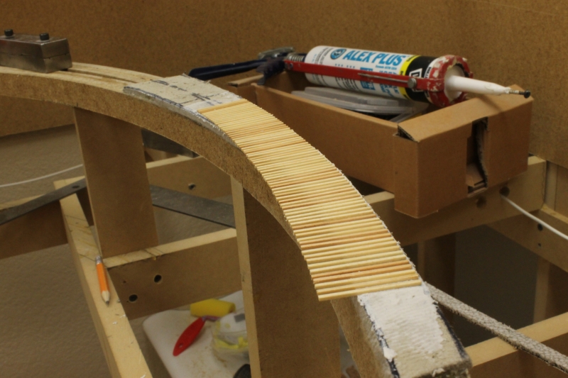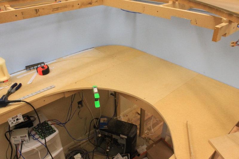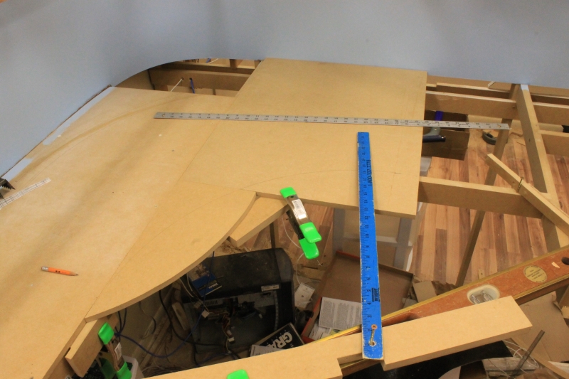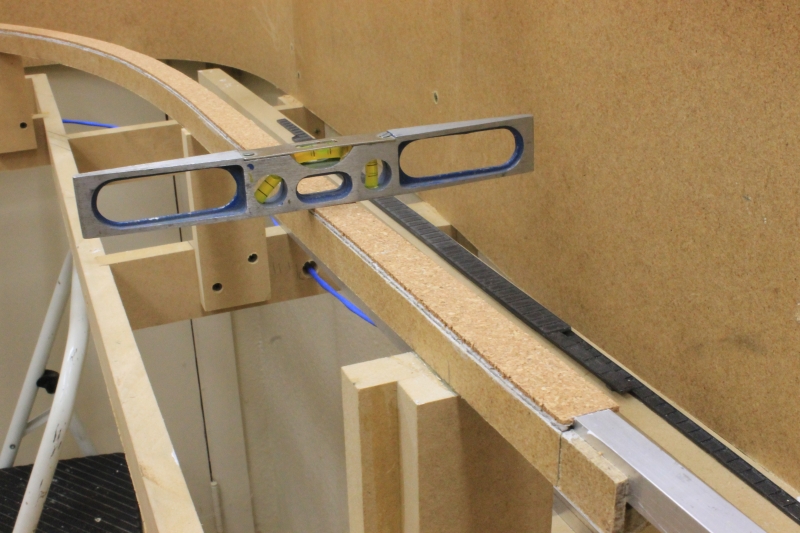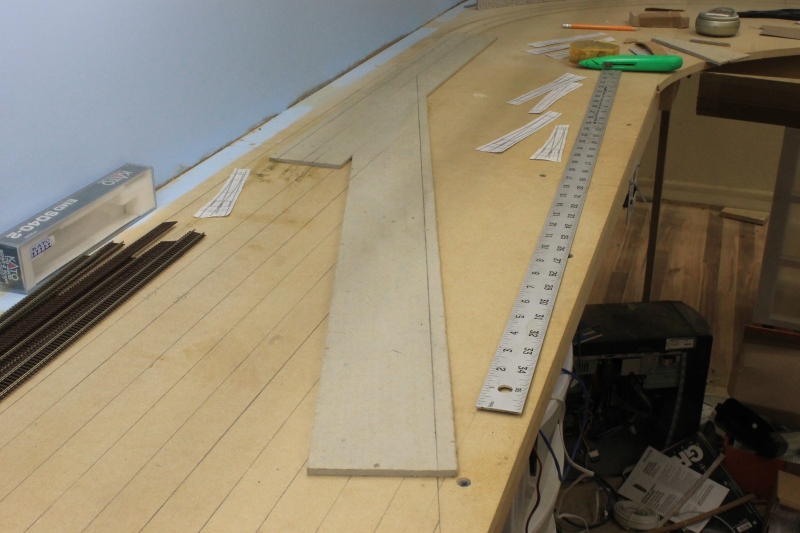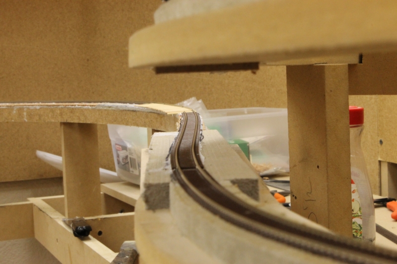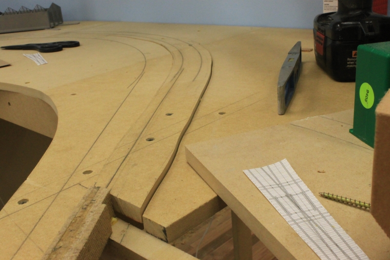 To get the MDF even with the spline, I had to do some "cookie cutter" benchwork and raise the subroadbed 3/8" of an inch.