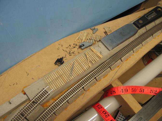 Turnout just about done. Needs guard rails and the ties cut to length.