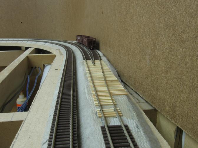 First part of the rails are laid. Note how close the hoppers are to the backdrop.