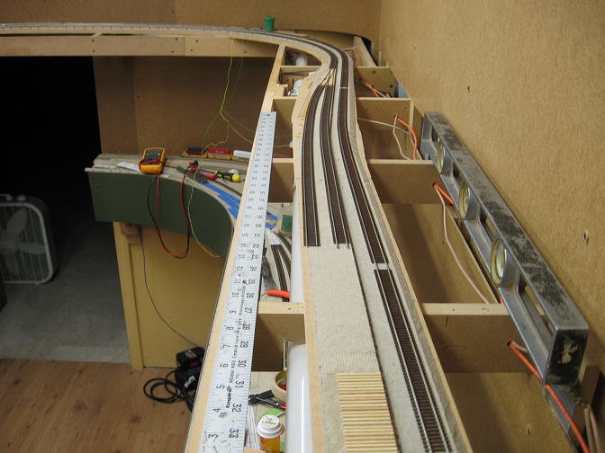 Still have two more turnouts to install, but the main line is done to this point.