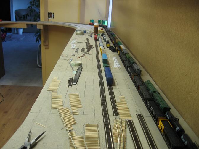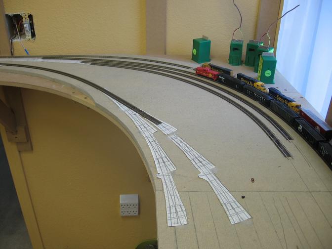 Here is the south yard throat laid out and waiting for ties to be glued down.