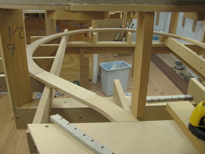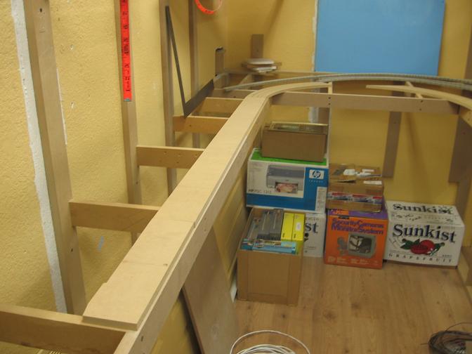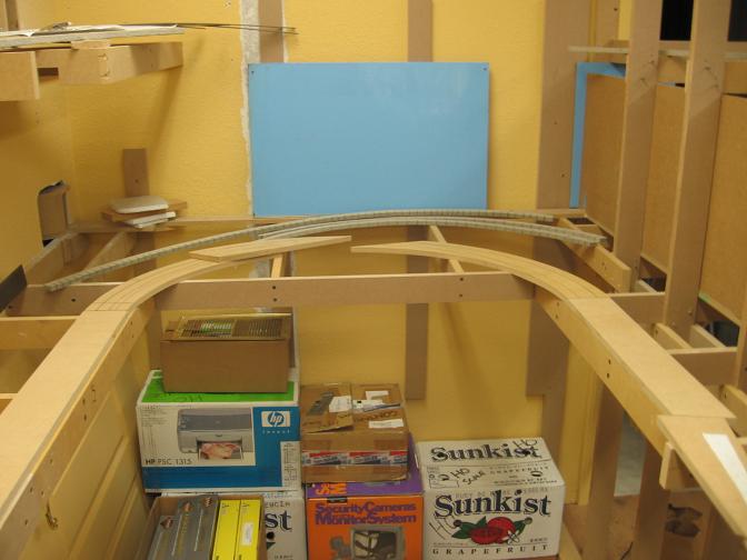 The staging tracks will loop around and end here. The main line and the town of Mammoth will be located right above the staging tracks.