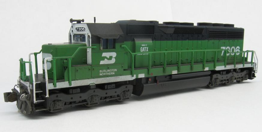 Here we have a Kato Burlington Northern SD40G. This loco is too new for my modeling time of May 1988, but I had detailed it before I backdated from 1990. It will find some running time between operating sessions.