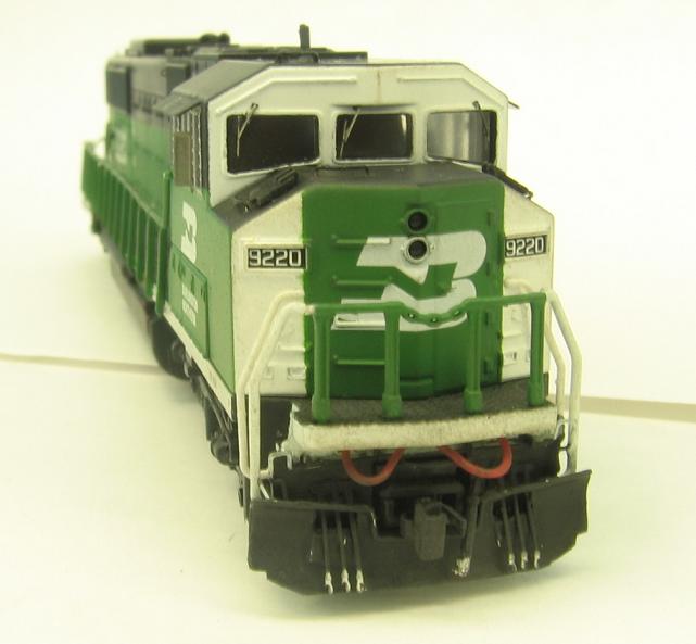 This is my second attempt at detailing a BN SD60M. The first one was about half way done when it fell off the workbench and busted into pieces. Maybe it was a good thing, because there were some aspects of it that I didn't like, which were fixed on this loco. I did quite a few mods on this loco, more then I usually do, and I think they paid off. Mostly it's the fuel tank and air tanks that I like. I sanded off that stupid line in the middle of the fuel tank, and cut out the stock air tanks. I added some Sunrise Ent. air tanks, positioned in the correct place above the fuel tank. A pain to do, yes, but I like the way they pop out.