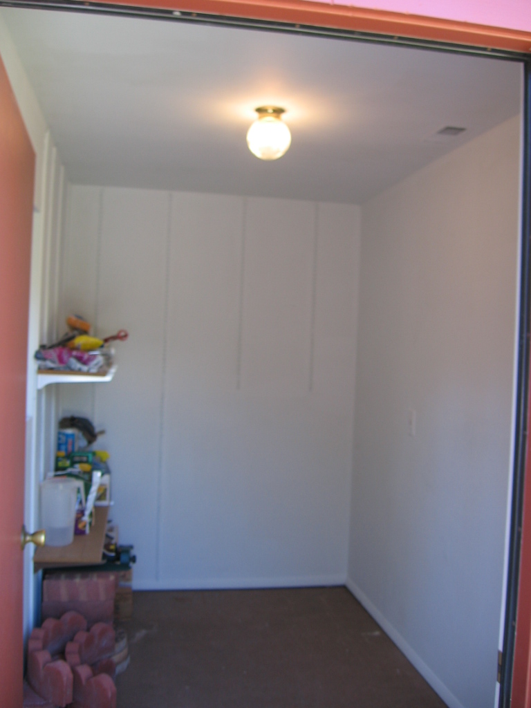 The storage room is only accessed from outside of the house. This is looking into the room from the backyard.